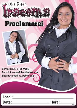 comercial do novo cd da cantora iracema, sendo a apresentação do seu 2º cd PROCLAMAREI está em todas as livrarias de Belém e Macapá.